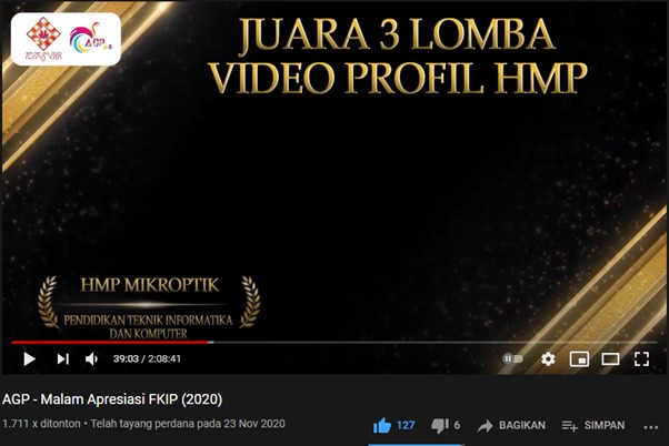 Then, this profile video was issued to BEM FKIP’s 2020 Apresiasi Gelora Pendidikan Competition which is held in 25th of October 2020. This event is also an appreciation for students and organizations in FKIP UNS for their hard work and achievements. HMP MIKROPTIK got 3rd place from all 24 associations in FKIP UNS.
